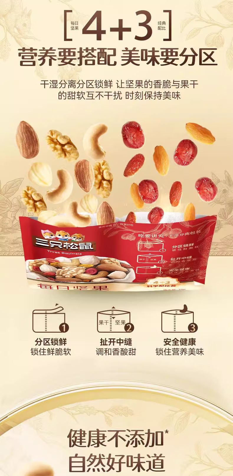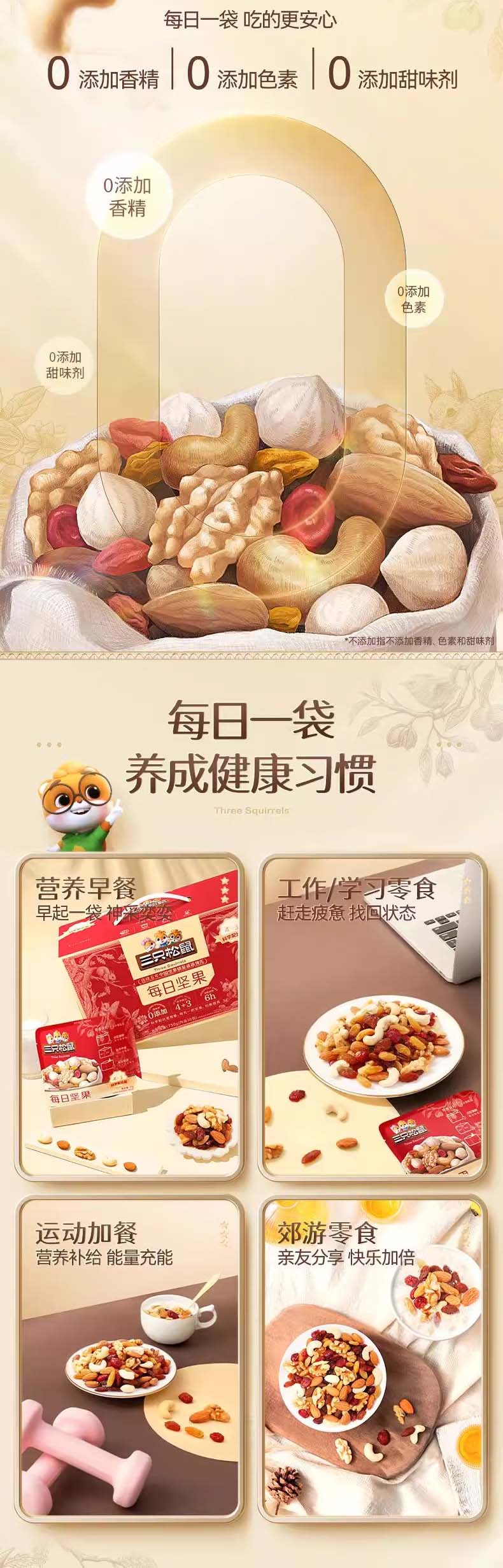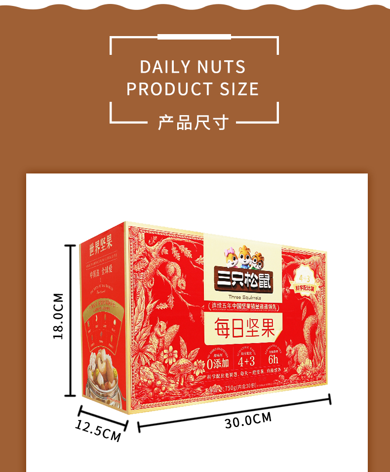 三只松鼠每日坚果礼盒750g(4种坚果+3种果干)共30包