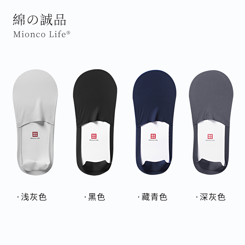 棉客诚品Mionco Life冰丝不掉跟隐形抗菌船袜(男款4双装)