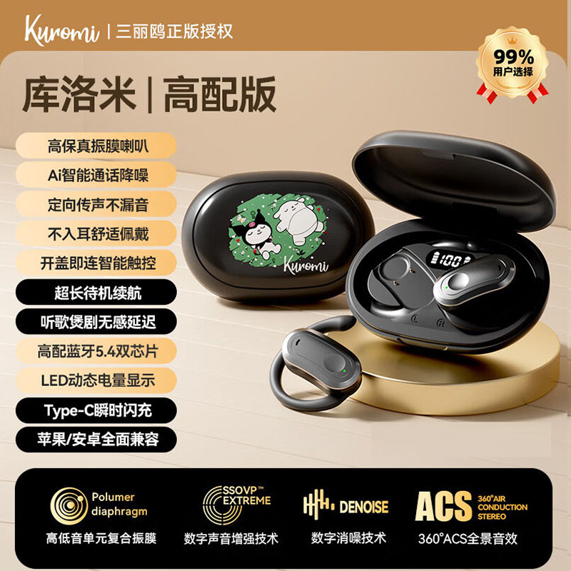 首页 > 智能数码 > 智能影音 > 耳机 >  【官方正品】三丽鸥2025新款「挂耳式」蓝牙耳机开放不入耳无线骨传导